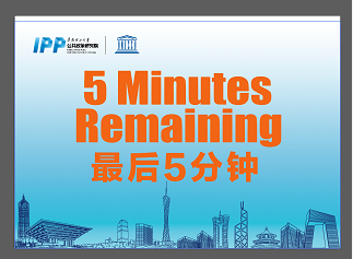 再則,有些會議需要嘉賓限時發(fā)言,當(dāng)嘉賓發(fā)言時間快到,比如還剩5分鐘時,就會舉牌提示;時間結(jié)束也會提示,這些指示語該如何翻譯呢?